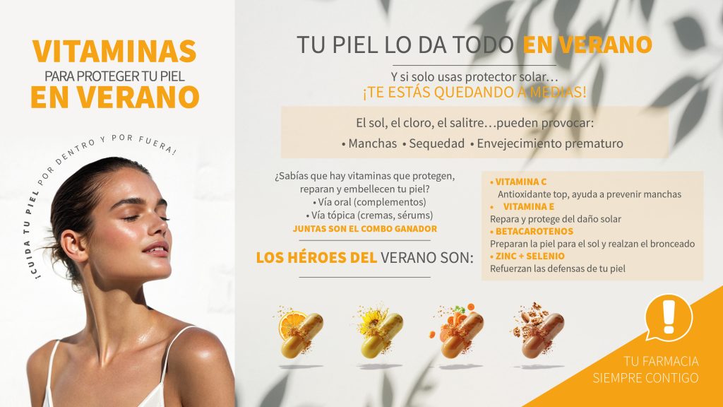 26 Ago Consejos Vitaminas para tu piel en verano Aquí te contamos las más importantes. Tu farmacia siempre contigo